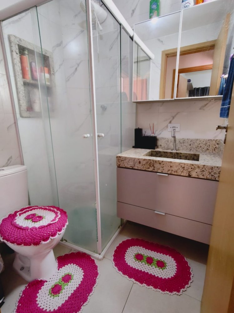 • Banheiro moderno, com móveis planejados