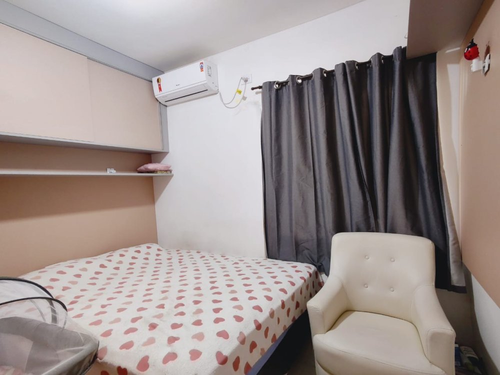 • 2 quartos, sendo o de casal com móveis planejados